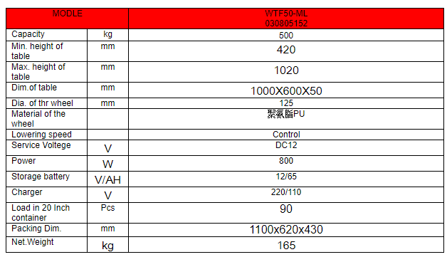 WTF50-ML Electrical Hydraulic Lift Table