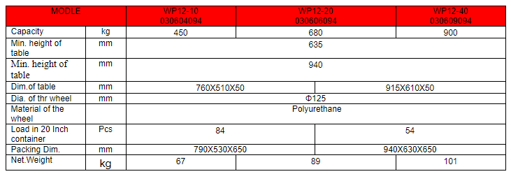 WP12 Series Hand Hydraulic Lift Tables